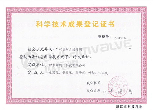 浙江省科学技术成果科学技术成果:硬密封三通球阀
