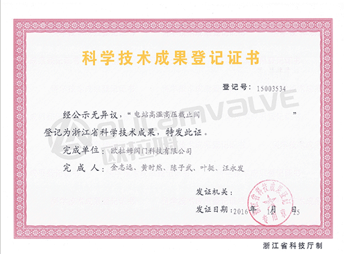 浙江省科学技术成果科学技术成果:支架螺纹连接的多回转阀门