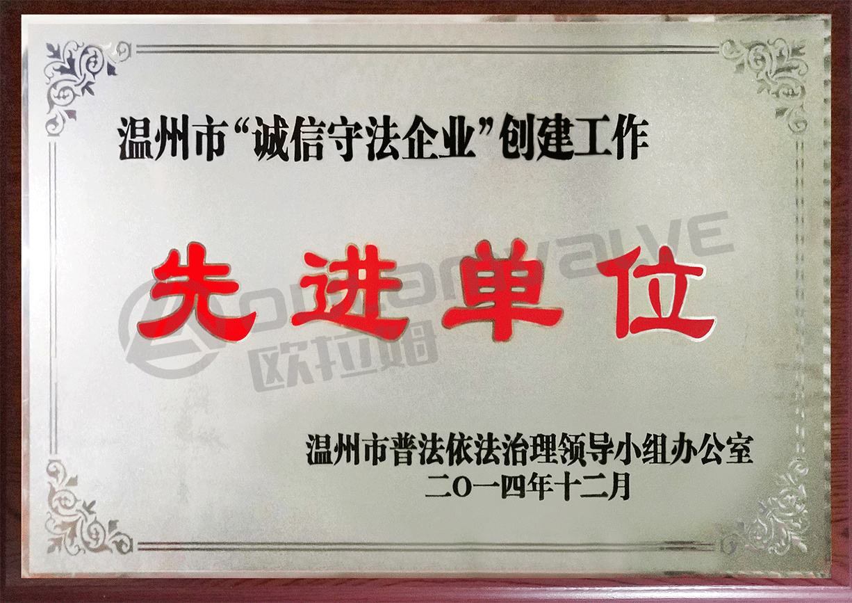 温州市“诚信守法企业”创建工作先进单位